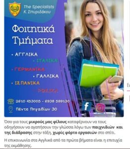 Κέντρο ξένων γλωσσών Πάτρα The Specialists Σπυριδάκου Κωστούλα